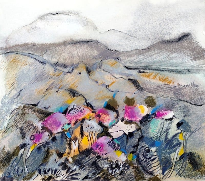 eine kleine Malerei als Mix aus Aquarell, Acryl und Farbstiften. Ganz spontan sind viele kleine Arbeiten als Probierstücke für meine Weiterentwicklung entstanden. Ohne viel nachzudenken kombiniere ich verschiedene Malmittel und lerne dabei zusätzlich zum Aquarell, auch Farben in Acryl zu mischen, Stiftzeichnungen übereinander zu legen, und es immer neu zu kombinieren. Hier und da arbeite ich Papierschnipsel als Collageteil mit ein. Es tut mir gut und lockert festgefahrene Arbeitsweisen. Es führt mich aus der gewohnten Malkomfortzone und so gewinne ich neue Ideen und bin frei von strengen Bewertungen meiner Arbeiten. Dieses kleine Bild ist gelungen und ich möchte es stellvertretend hier posten. Kleinformat auf Bütten Lana 300 g/qm und als Mix erkennbar. Hier eine neue Serie von Arbeiten in Mixed Media. Vor allem die Ölpastelle bringen leuchtende Effekte in mein Bild.