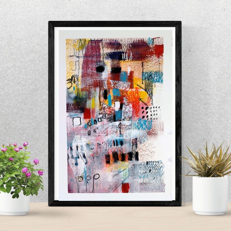 Original Mixed-Media Bild auf Büttenpapier mit lichtechten Farben und Stiften gemalt – signiert
